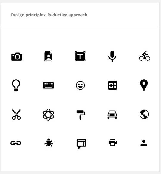 设计准则:化繁为简——Google在用户界面上的有一些黑白风格的icon也遵循同样简化的设计准则,在剥离了色彩之后,仅仅保留单纯的意向语言,杜绝icon太过喧宾夺主,反而干扰了用户的注意力。