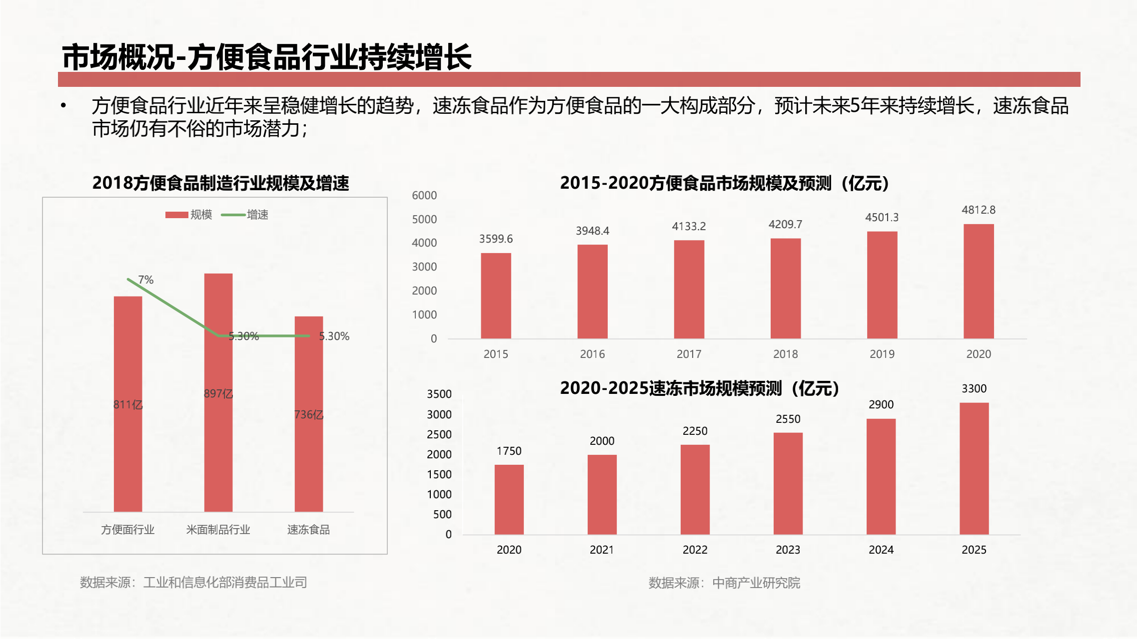 方便食品行业近年来呈稳健增长的趋势,速冻食品作为方便食品的一大构成部分,预计未来5年来持续增长,速冻食品市场仍有不俗的市场潜力;