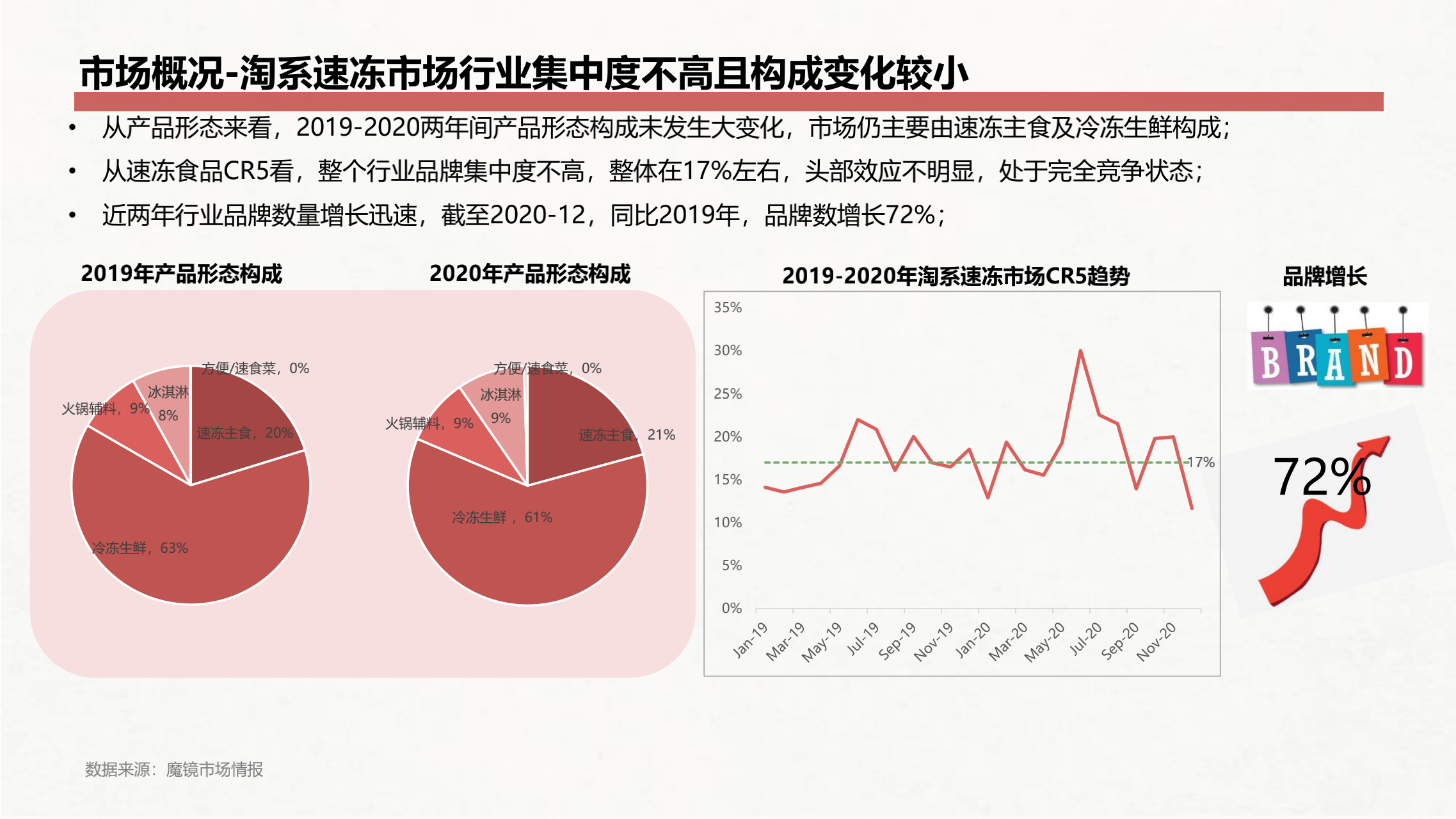 2020年,淘系平台速冻市场整体销售收入达121.3亿,对比速冻整体市场数据,线上销售仍有较大的市场空间;