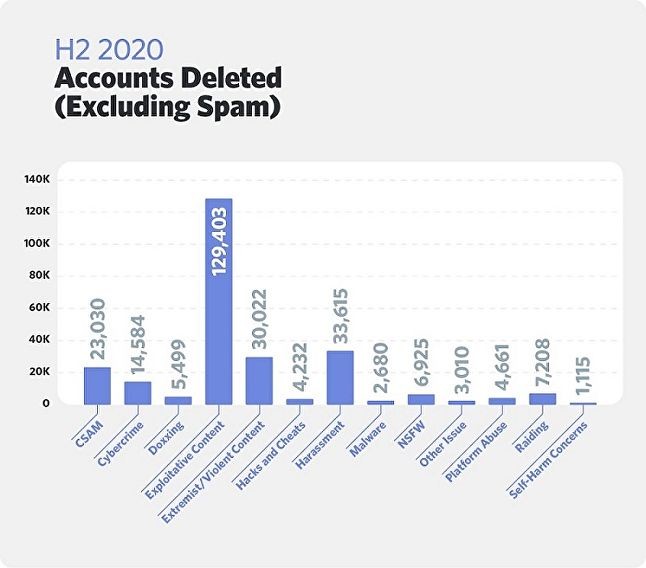 Discord发布了2020年7月至2020年12月31日的透明度报告。数据包括用户提交的关注点,在此期间采取的操作和观察到的趋势。