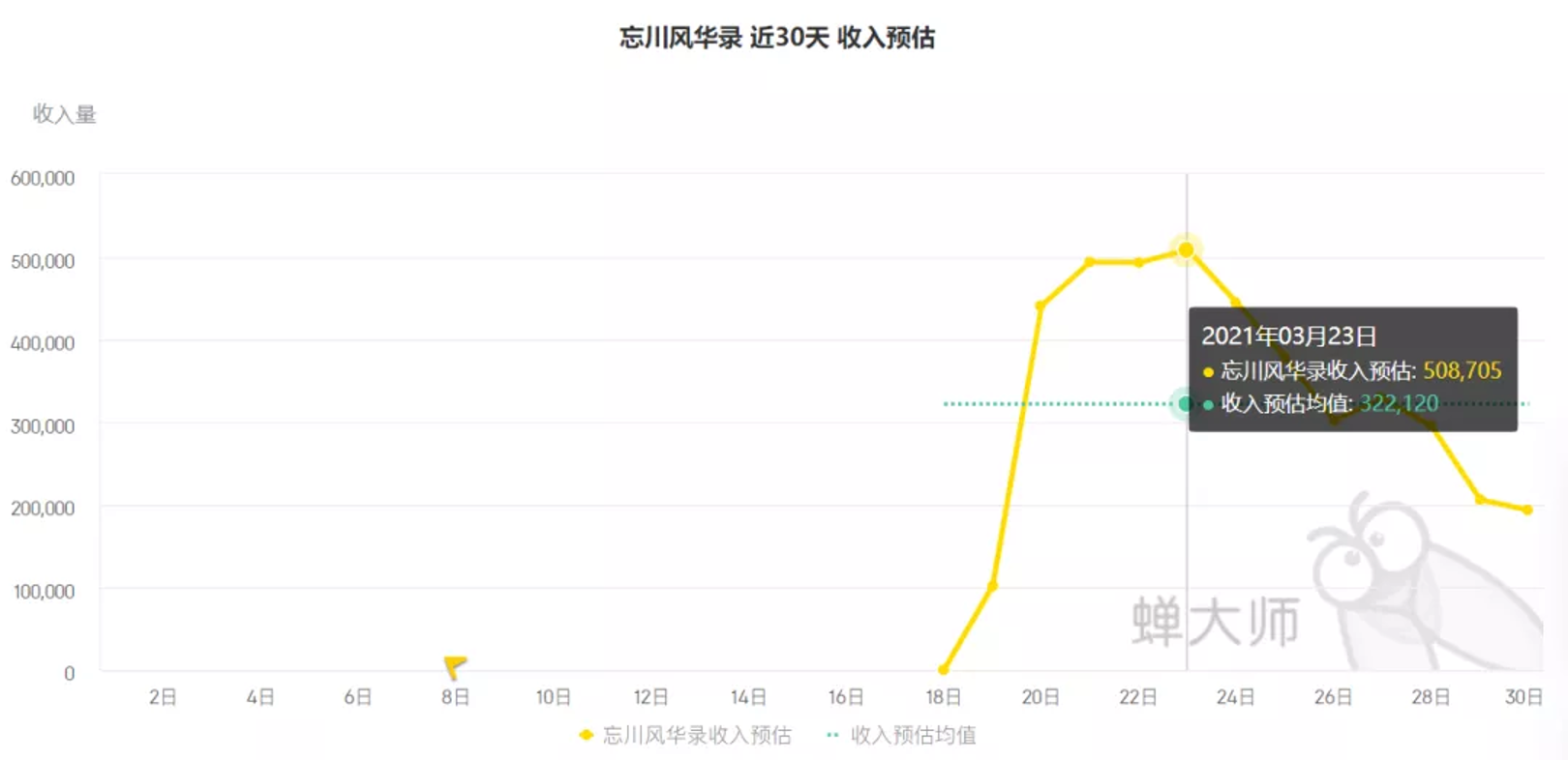 另外,《原神》则继续保持超高的吸金能力。根据蝉大师的“收入预估”功能显示,《原神》3月份收入超过2856万美元,近30天的日均收入高达94.48万美元,这还仅是中国区App Store的成绩。此前有数据表明《原神》的移动端6个月内吸金超过10亿美元,全平台日均收入580万美元。