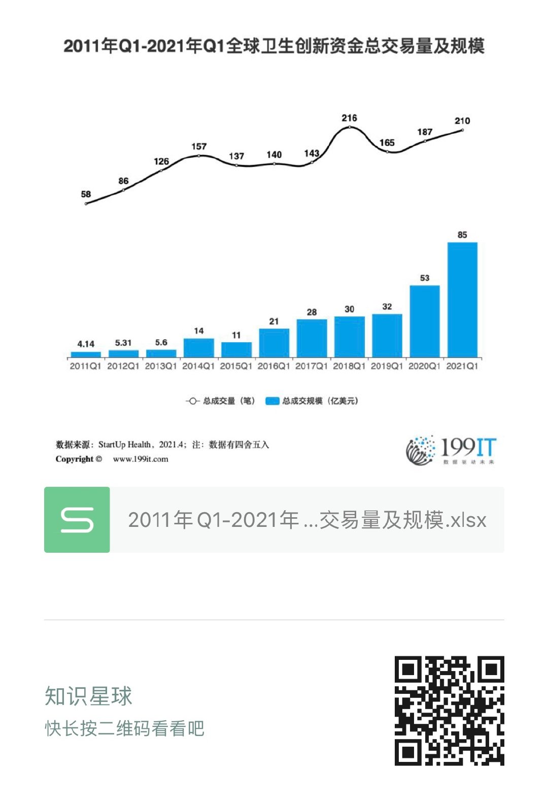 2011年Q1-2021年Q1全球卫生创新资金总交易量及规模(附原数据表) ​​​​