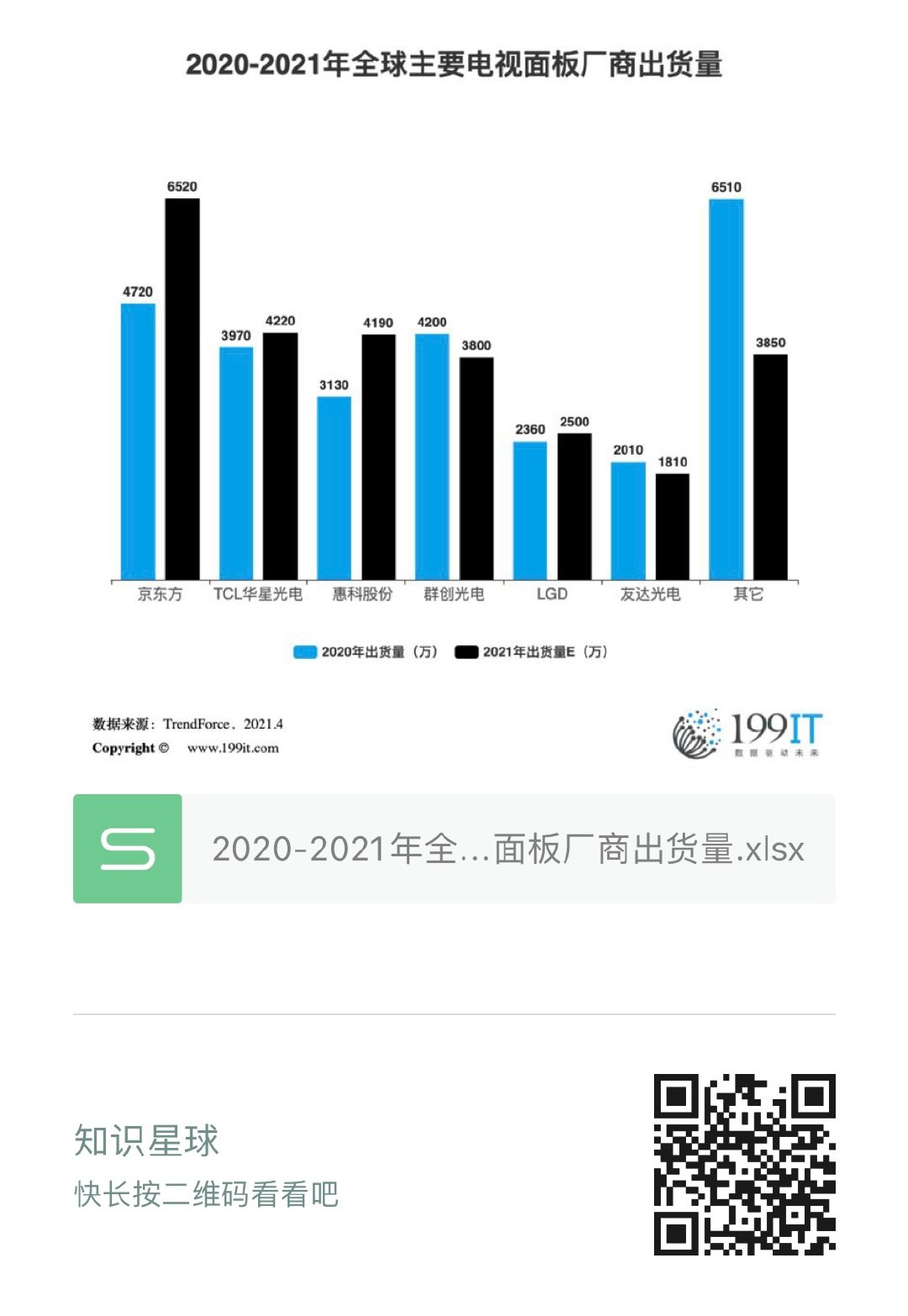 2020-2021年全球主要电视面板厂商出货量(附原数据表) ​​​​