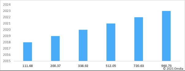 视频聊天的兴起刺激了配备显示屏的智能音箱的出货量增长。Omdia估计,2020年全球范围内智能音箱出货量中的大约五分之一(18.8%)搭载有显示屏,高于2019年11.5%的比例。