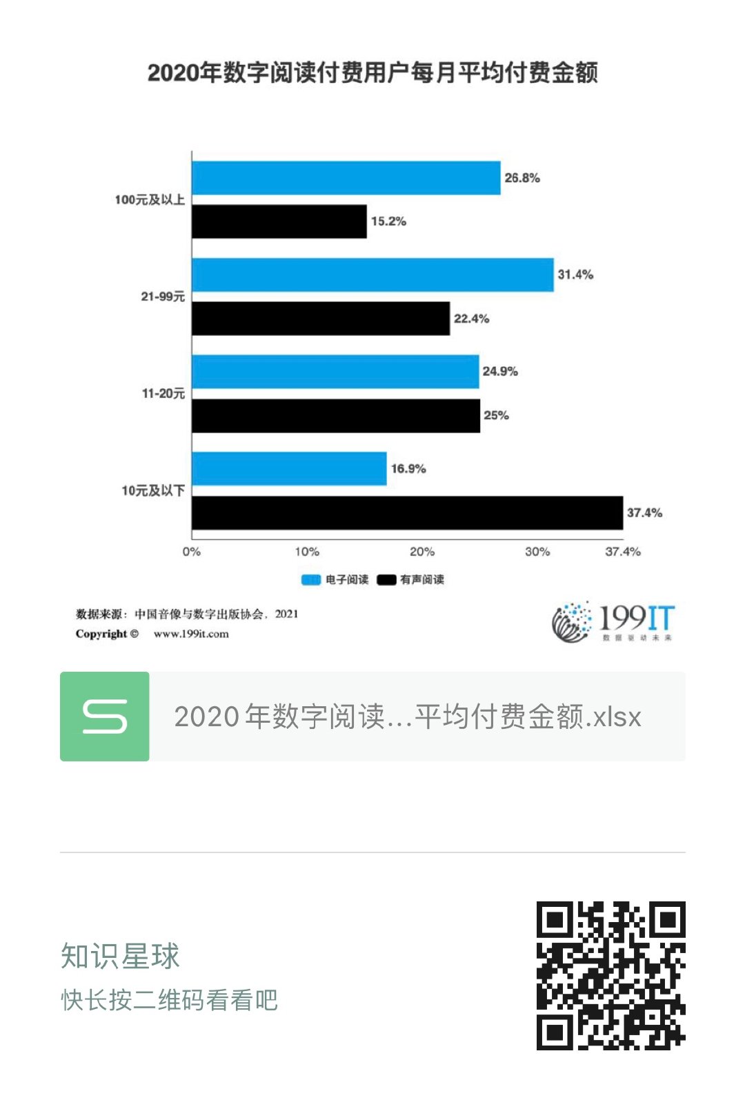2020年数字阅读付费用户每月平均付费金额(附原数据表) ​​​​
