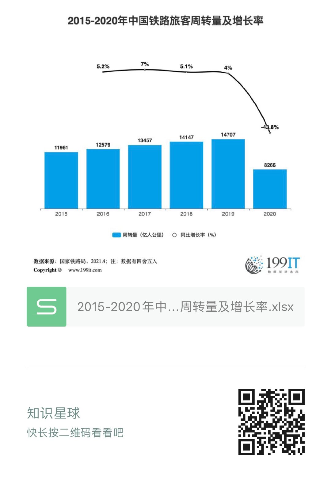 2015-2020年中国铁路旅客周转量及增长率(附原数据表) ​​​​