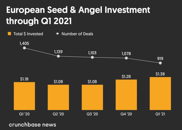 13亿美元的种子投资是欧洲种子投资的最高纪录,同比增长26%,环比增长10%。