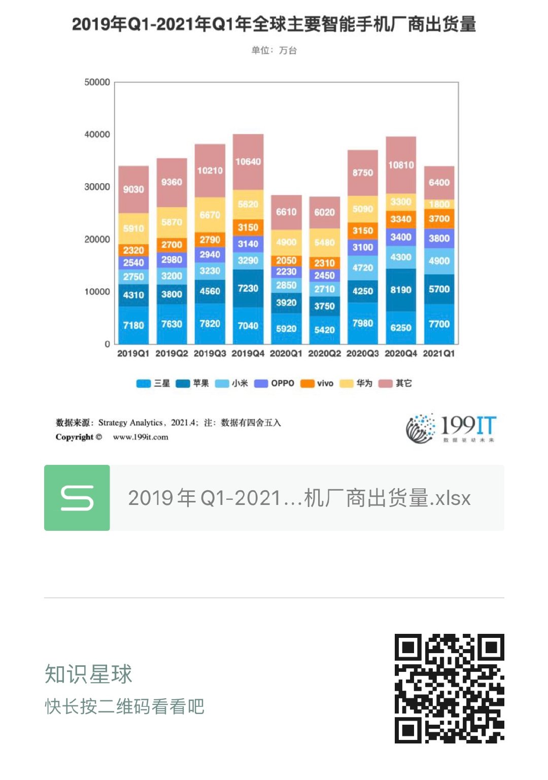- 2021年Q1全球主要智能手机厂商出货量及增长率(附原数据表)