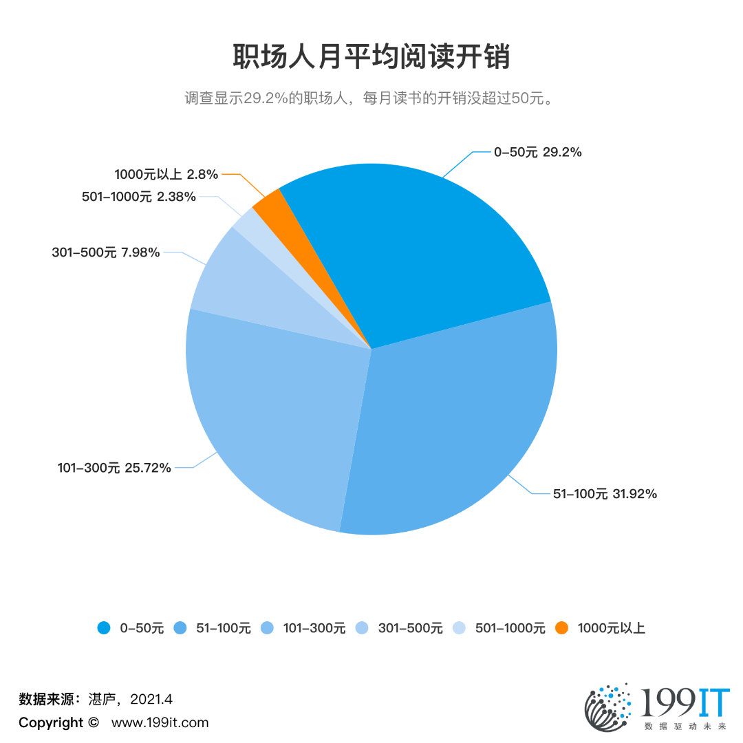 调查显示29.2%的职场人,每月读书的开销没超过50元。 更多阅读:世界各城市60平米房屋成本途虎养车:2018中国汽车用户线上养护行为报告Nature:携带相同基因组的癌细胞或许会表现出不同的行为!自如研究院:2021年10城毕业生租房报告国际顶刊《PNAS》:爱发朋友圈的人,更容易长寿在中国,只抓一个权健是不够的正所谓「饱暖思淫欲」,这种蛋白质竟是“催情药”!Nature揭秘从面包到爱情的科学机制《柳叶刀》:研究显示新型RSV疫苗有效率达80%亚洲开发银行:通过区域移民消解人口赤字Feedvisor:2025年返校季策略报告中国科学院心理研究所:中国中老年人心理健康现状联合国粮农组织食品价格指数2025年4月上行2024年3月中国奶业贸易月报深房中协:2024年第21周深圳二手房交易量小幅下滑,在售量再超6万套2024年Q1开发者健康调查报告