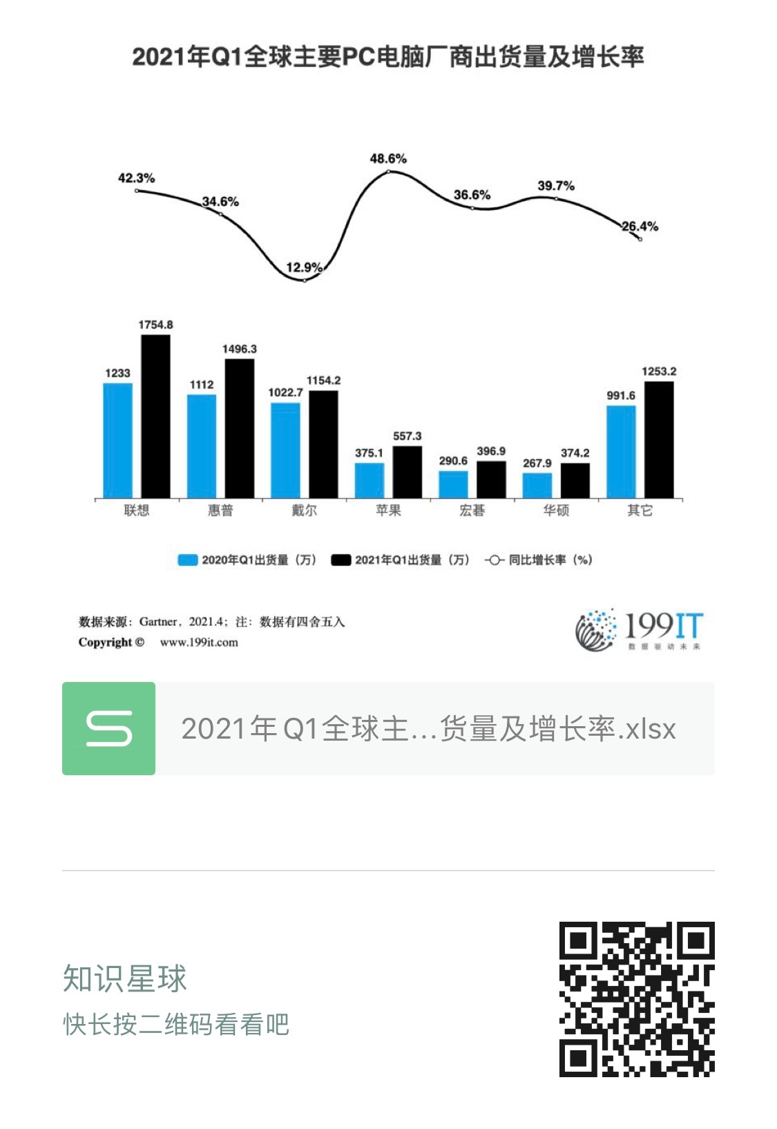 - 2021年Q1全球主要PC电脑厂商出货量市场份额(附原数据表)