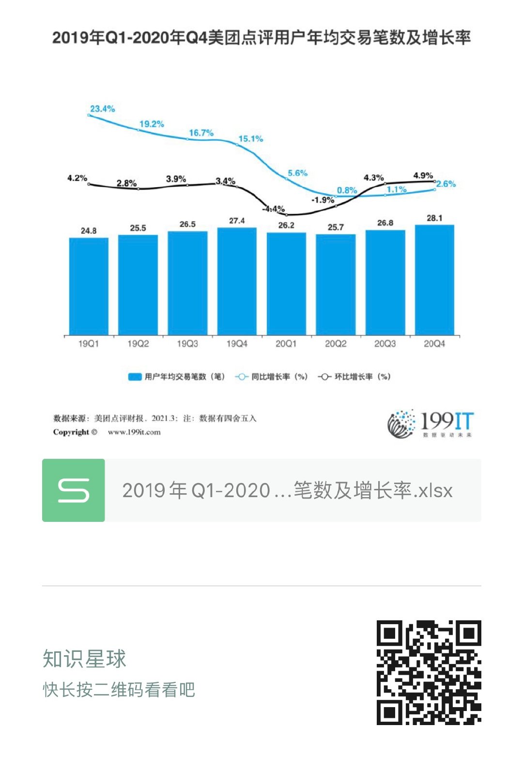 - 2019年Q1-2020年Q3美团点评用户年均交易笔数及增长率(附原数据表)