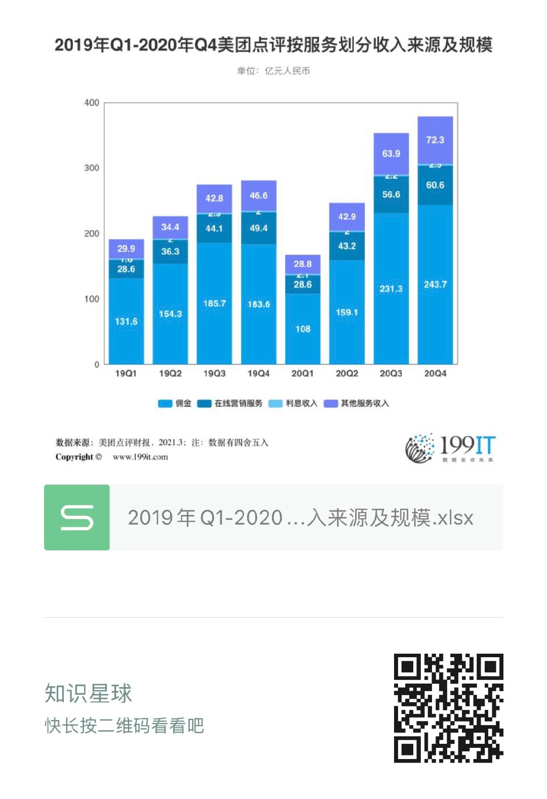 - 2019年Q1-2020年Q4美团点评按服务划分收入来源及占比(附原数据表)