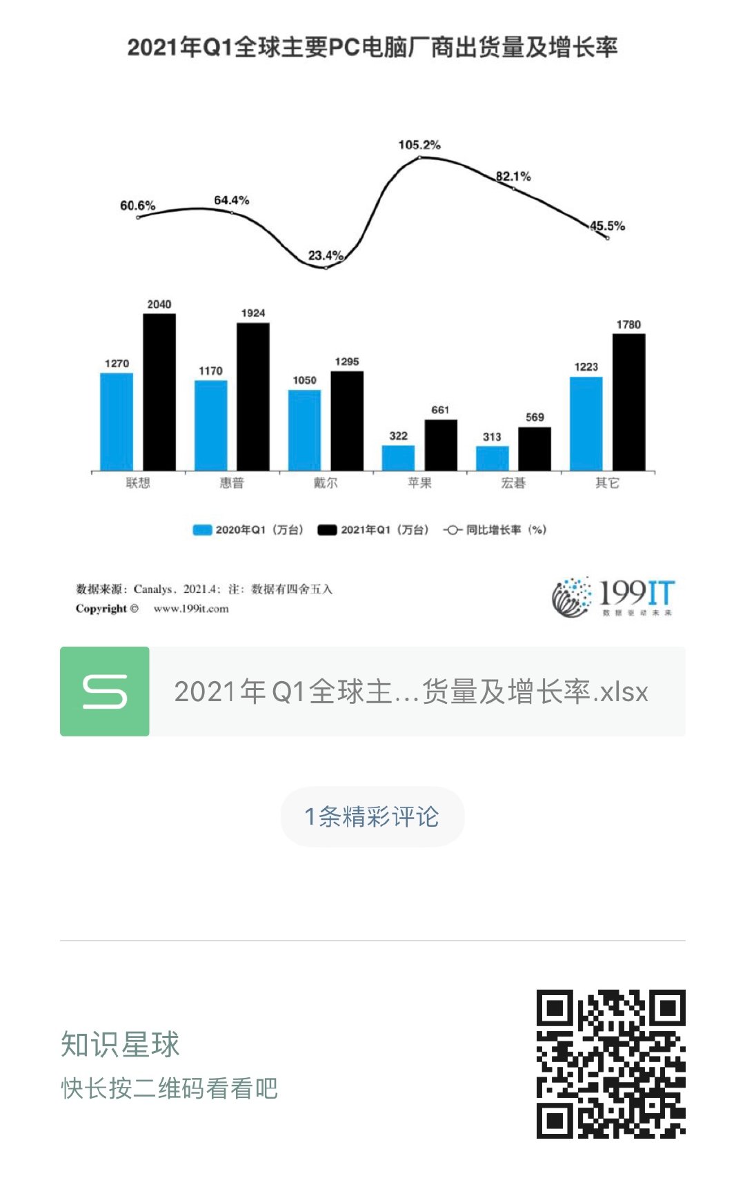 - 2021年Q1全球主要PC电脑厂商出货量市场份额(附原数据表)