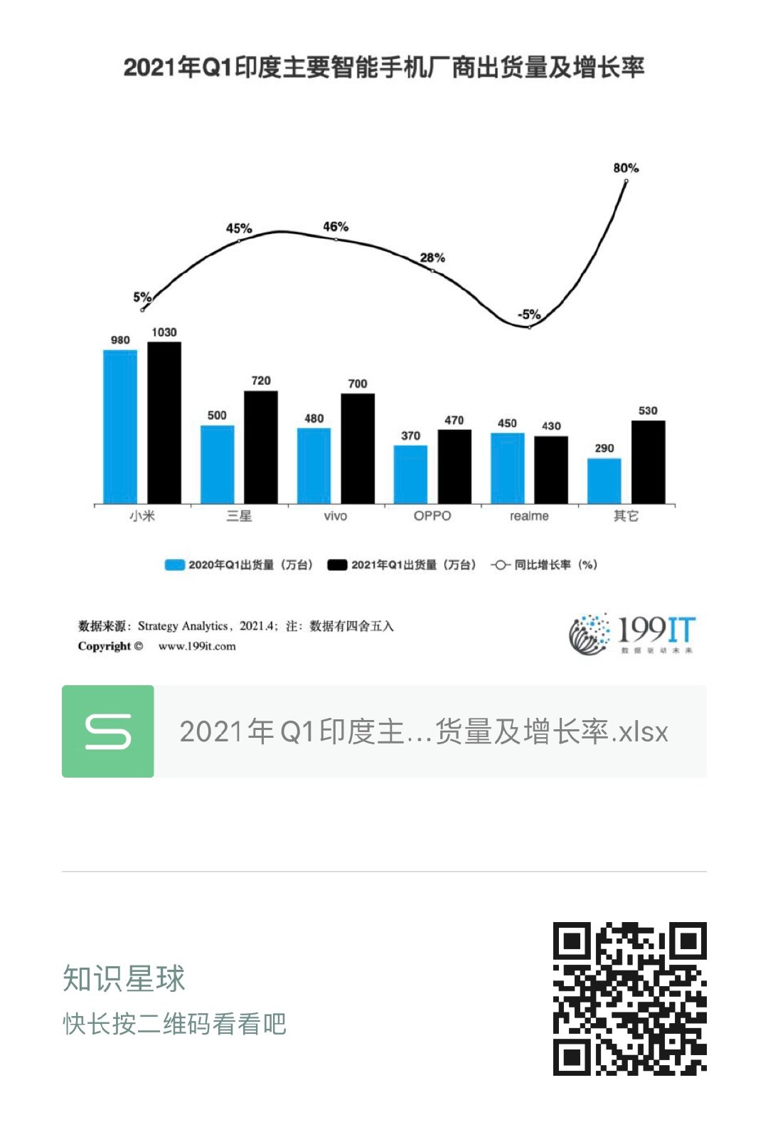 2021年Q1印度主要智能手机厂商出货量及增长率(附原数据表) ​​​​