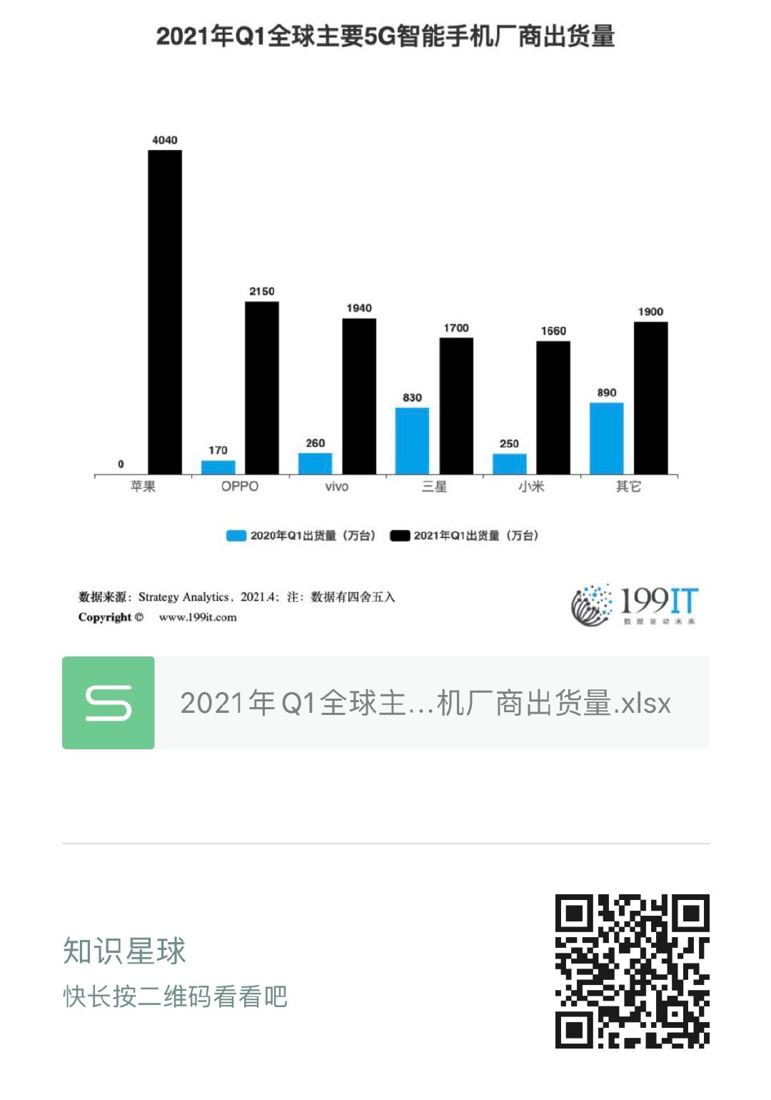 2021年Q1全球主要5G智能手机厂商出货量(附原数据表) 更多阅读:2021年Q4全球主要5G智能手机厂商出货量同比增长率(附原数据表) 2022年Q2全球主要5G智能手机厂商出货量市场份额(附原数据表) 2021年Q1全球主要5G智能手机厂商出货量及增长率(附原数据表) ABI:下一代 5G 部署将大幅上升GSMA:2022年中国移动经济发展报告Opensignal:2022年美国三大运营商5G报告5G展望系列:实现包容性的长期机遇报告印尼的未来:打造一个有弹性的数字国家GSA:2021上半年5G频谱网络和设备报告GSA报告:从LTE到5G的演进成就更好5G的五大关键:影响消费者采用5G的重要趋势发现IPlytics:5G专利报告中国移动:5G无线技术演进白皮书Ookla:2022年Q3全球5G网速平均下行 168.27MbpsOokla:2021上半年全球5G报告
