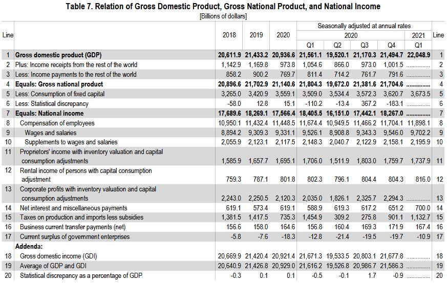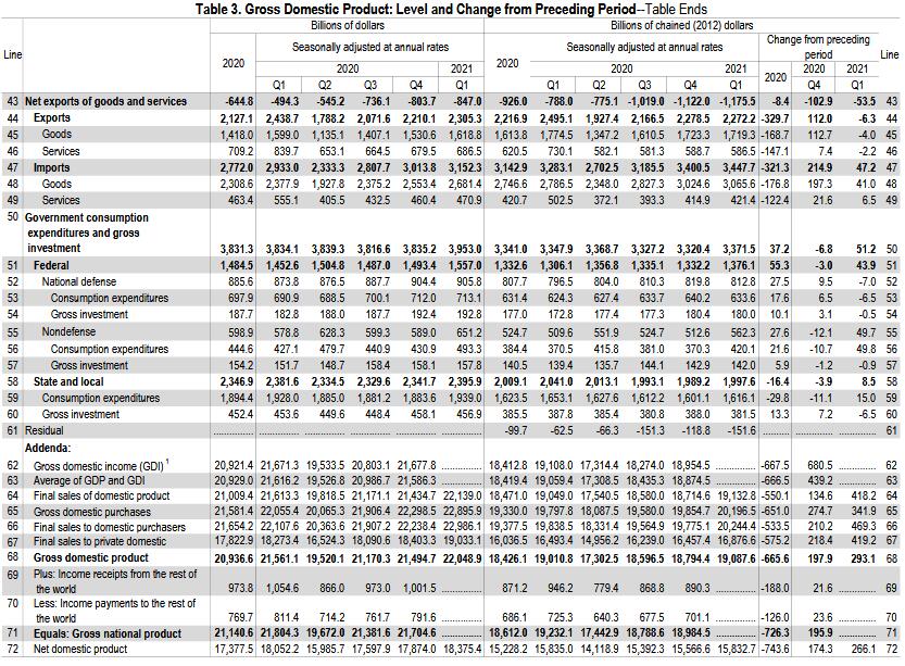 当前美国GDP在第一季度增长了10.7%,即增长5542亿美元,达到22.05万亿美元。第四季度,GDP增长6.3%,即3245亿美元。
