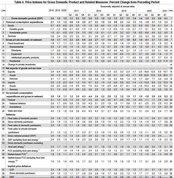 第一季度国内生产总值购买力增长3.8%,而第四季度为1.7%。PCE指数(个人消费支出的隐形价格平减指数,等于名义消费者支出和实际消费者支出的比值。)上升了3.5%。扣除食品和能源,PCE指数上升了2.3%。