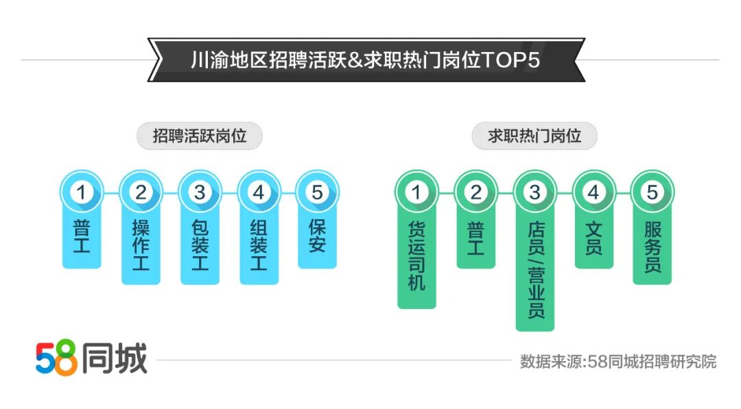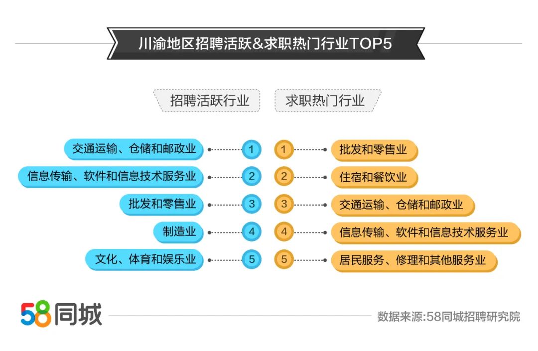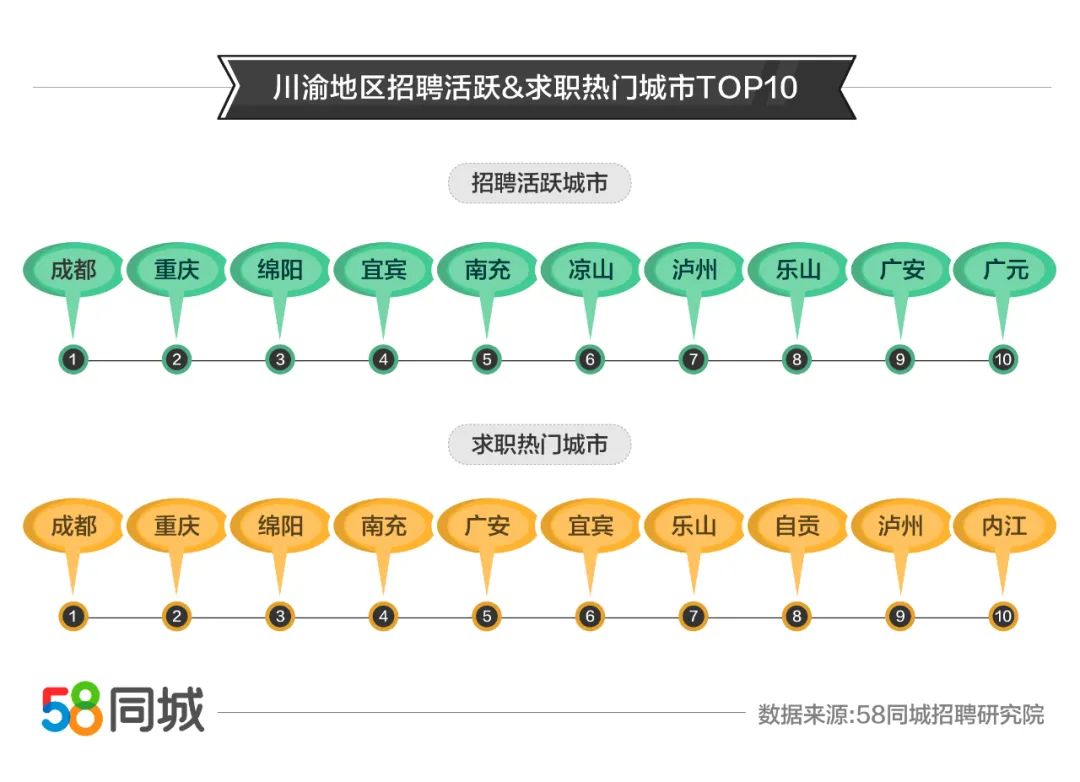 作为国民招聘大平台,58同城结合就业市场需求,发布行业招聘求职数据,从多维度解析川渝地区就业情况,为企业招工、人才求职提供第一手信息,也促进人才更加理性地在城市、行业、岗位间流动,深层次地发挥稳就业作用。
