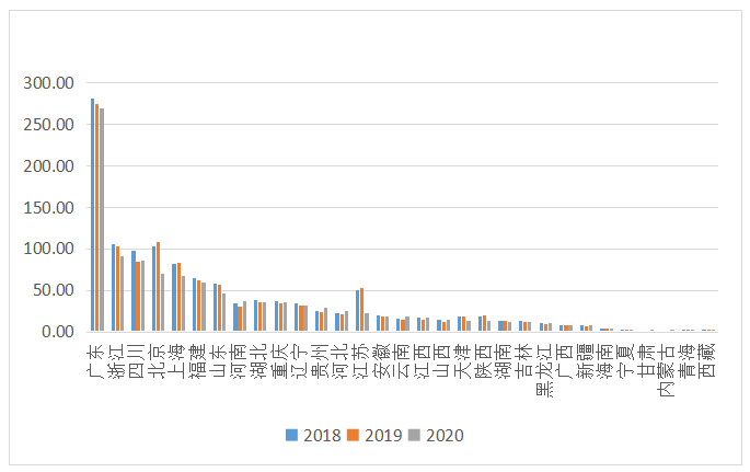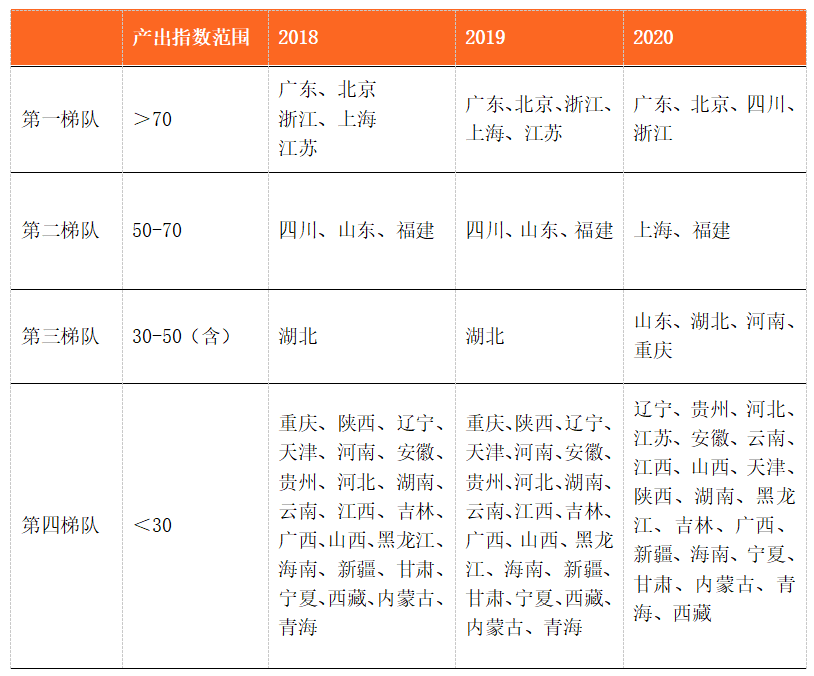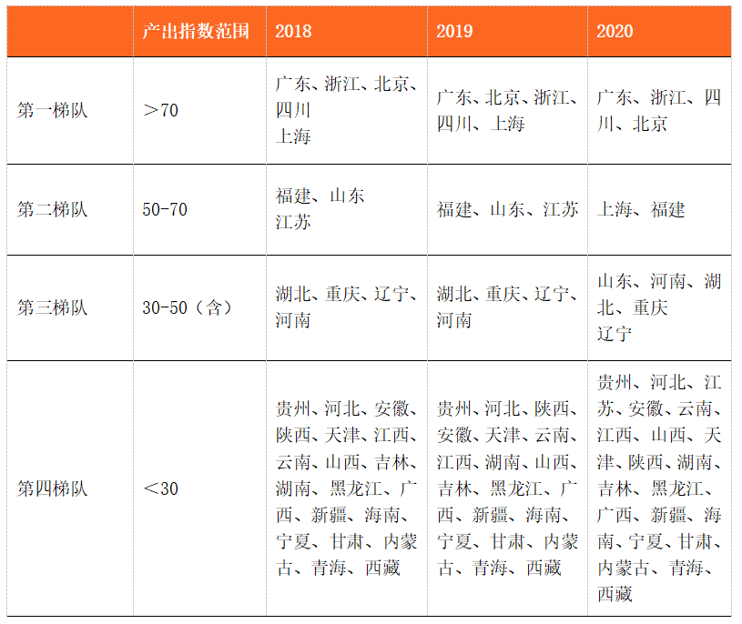 零壹智库:2021软件业发展指数 一、方法与&释义 (一) 术语 表1:本文关键概念说明 数据来源:零壹智库 (二)数据来源 员工人数、注册指标、软件企业数量、软件著作权数量和专利权数量来自企查查。软件业务收入来自国家统计局,基于前两年数据,对2020年软件业务收入进行了预测。 (三)指标权重 与数字人才景气指数相同,指标权重仍采用CRITIC客观赋权法。 二、总体情况:规模萎缩,广东表现亮眼 首先,我们看看近三年软件企业的总体情况。 (一)企业数量:持续下降 2020年我国软件企业共244,105家,较2019年减少23,809家(8.89%),较2018年减少66,130家(21.32%),企业数量近三年呈持续下降趋势。2020年软件企业主要集中在广东、四川、浙江等省份,数量分别占全国总量的21.31%、9.71%及6.75%,上市软件企业主要集中在北京、上海、广东、浙江、山东等地。 图1:2018-2020年全国软件企业数量 数据来源:企查查、零壹智库 图2:2020年各省市软件企业数量 数据来源:企查查、零壹智库 图3:2020年各省市上市软件企业数量 数据来源:企查查、零壹智库 (二)员工人数:持续下降 2020年我国软件企业员工人数1,713,230人,较2019年减少28,257人(1.62%),较2018年减少60,340人(3.40%),员工人数近三年呈持续下降趋势,但总体下降幅度相对较小。2020年软件企业员工人数较多的省市区有广东、上海、浙江、北京。众多上市互联网企业凭借其平台优势和技术实力吸引了大量软件人才是原因之一。例如广东的腾讯、华为、上海的拼多多、携程,浙江的阿里巴巴以及北京的百度、美团、字节跳动等。 图4:2018-2020年全国软件企业员工人数 注:软件企业员工人数以参保人数口径统计 数据来源:企查查、零壹智库 图5:20240年各省市软件企业员工人数 注:软件企业员工人数以参保人数口径统计 数据来源:企查查、零壹智库 (三)注册资本:持续下降 2020年我国软件企业注册资本总额为20,106.48亿元,同比减少4.97%,较2018年减少11.73%,软件企业注册资本总额近三年呈持续下降趋势。软件企业注册资本总额排在前五的省份包括广东、浙江、上海、四川、北京,分别占全国总量的22.81%、11.74%、9.12%、7.99%、6.35%,共计占比过半。 图6:2018-2020年全国软件企业注册资本总额 数据来源:企查查、零壹智库 图7:2020年各省市软件企业注册资本总额 数据来源:企查查、零壹智库 (四)软件著作权数量:持续下降 2020年我国软件著作权共705,894项,较2019年减少28,276项(3.85%),较2018年减少77,415项(9.88%),软件著作权数量近三年呈持续下降趋势。不同省市间软件著作权数量差距较大,广东省以191,596项软件著作权遥遥领先其他省份,超过50,000项专利的地区仅广东、浙江、福建、四川四省市。 图8:2018-2020年全国软件著作权数量 数据来源:企查查、零壹智库 图9:2020年各省市软件著作权数量 数据来源:企查查、零壹智库 (五)专利权数量:持续下降 2020年我国软件企业专利权共334,502项,较2019年减少1,058项(0.32%),较2018年减少3,233项(0.96%),专利权数量近三年呈持续下降趋势。上市软件企业聚集省份专利权数量相对较大,广东省以124,128项专利权位居榜首,超过20,000项专利的地区仅广东、北京、上海、浙江四省市。 图10:2018-2020年全国专利权数量 数据来源:企查查、零壹智库 图11:2020年各省市专利权数量 数据来源:企查查、零壹智库 (六)软件业务收入:东部占比较高,中西部占比较低 2020年,东部地区软件业务收入占比较高,中西部地区占比较低。产业聚集效应持续显现,软件业务收入排名前五的省份为广东、四川、浙江、福建、山东,软件业务收入占全国比重分别为21.31%、9.71%、6.75%、5.82%、5.36%,合计占比近五成,这些省份同时也是软件企业集聚省份。 图12:2020年各省市软件业务收入 数据来源:企查查、零壹智库 三、指数:粤浙川京沪稳居第一梯队 在了解全国软件企业发展情况后,接下来我们看看全国以及各省市的软件企业指数表现情况。 (一)全国发展指数:近三年持续下滑 近三年全国软件企业整体发展指数水平显著持续下降,从2018年的71.62降至2020年的63.27。 图13:2018-2020年全国发展指数 数据来源:零壹智库 (二)省级投入指数:粤浙川闽沪京稳居前六,指数增幅皆为负 投入指数较高的省市区大多位于东、中部地区,其中广东、浙江、四川、福建、北京、上海近三年投入指数稳居前六,广东、浙江、四川、上海稳列第一梯队。 与2018相比,各省市区投入指数均呈负增长,降幅最大的省份为宁夏、四川、黑龙江、内蒙古、江西,分别为-31.67%、-24.53%、-24.10%、-23.20%及-22.71%。 图14:2018-2020年各省市软件企业投入指数 数据来源:零壹智库 表 2:2018-2020年各省市投入指数排行 数据来源:零壹智库 (三)省级产出指数:粤京浙沪川稳居前五,江苏负增长最严重 从产出指数来看,2020年产出指数较高的前五个省市为广东、北京、四川、浙江、上海,排名相较于2018、2019年有所变动,四川晋升前列,江苏掉队,其中广东、北京、浙江近三年产出指数稳居第一梯队且保持全国前三。 与2018比,各省市产出指数增幅有正有负,正增幅最大的为青海省(142.77%),负增幅最大的省份为江苏(-72.09%)。 图15:2018-2020年各省市软件企业产出指数 数据来源:零壹智库 表 3:2018-2020年各省市产出指数排行 数据来源:零壹智库 表 4:相较于2018年软件企业产出指数增幅 数据来源:零壹智库 (四)省级发展指数:粤浙川京沪稳居前五 从发展指数来看,广