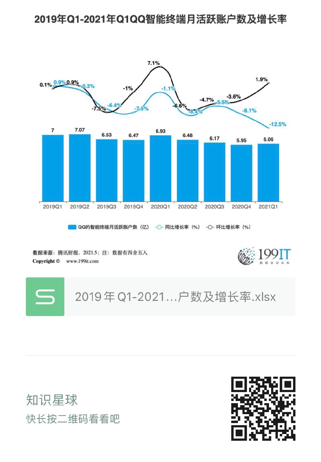 2019年Q1-2021年第一季度QQ智能终端月活跃账户数及增长率(附原数据表) ​​​​