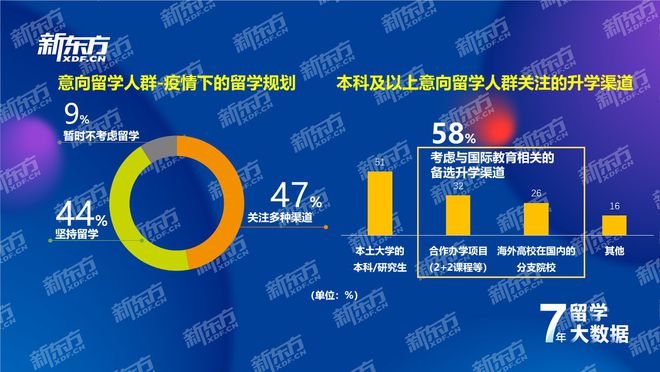 在数据分析过程中,新东方前途出国、新东方国际教育、新东方欧亚教育、斯芬克国际艺术教育等各业务领域发挥各自所长、有效联动,与全球市场调研公司Kantar(凯度)、全球数字支付公司Visa、中国银行等知名企业合作,通过大数据汇总展示,深入挖掘留学行业新动态。