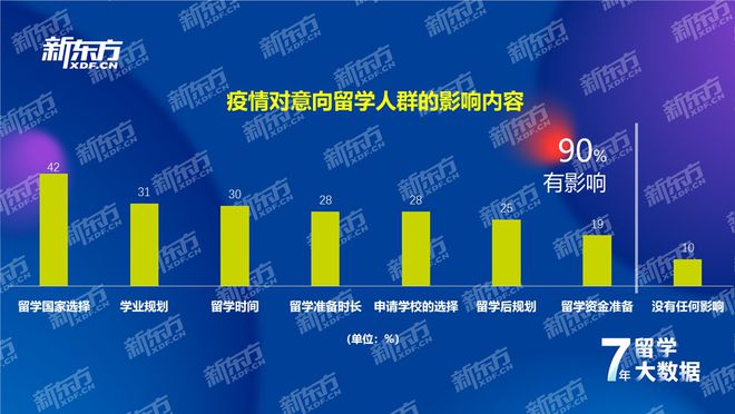 疫情的出现给全球各行各业都带来不可避免的影响,留学行业也不例外。调研数据表明,9成有留学意向的学生及家长认为疫情对留学规划产生了影响。其中对留学国家选择的影响高于其他方面。基于此,海外国家及地区的疫情控制程度也直接影响着申请人对留学目的国的选择。