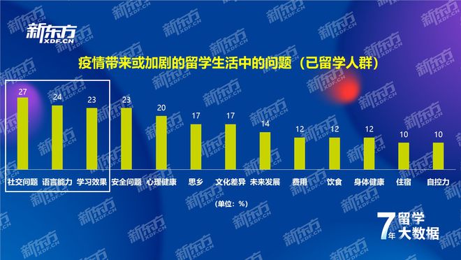 疫情之下大量留学生采用居家学习、网课的教学方式,因此更多留学生认为疫情在“社交问题”、“语言能力”、“学习效果”方面带来了更多的不利影响。此外,疫情对留学生在“安全问题”、“心理健康”方面也产生了显著的影响。据目前形势而言,大多数国家逐渐开放国境,相信对于2021年入学的学生来说,非常有希望恢复往常的留学生活。