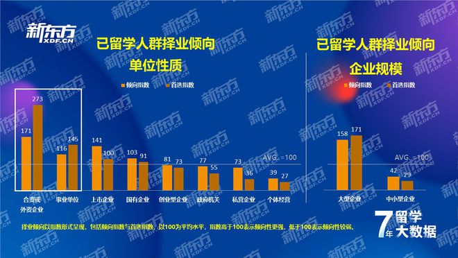 在企业选择上,大型企业无论是在人才招纳政策方面还是管理制度、福利待遇方面都更明晰,流程相对更完备,因此成为留学生回国就业的首选。在企业性质方面,合资或外资企业在企业氛围和人员构成方面都更加国际化,能够让留学人群更快度过国内职场适应期,因此成为大部分留学人群的共同选择。
