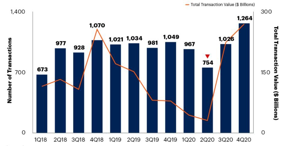 Gartner补充说,在2020年下半年,高度重叠的组织之间的整合也明显增加,在服务市场增加65%,在软件市场增加40%。它说,这一趋势表明首席执行官必须为主要对手合并的竞争格局做好准备,特别是在服务提供商市场。
