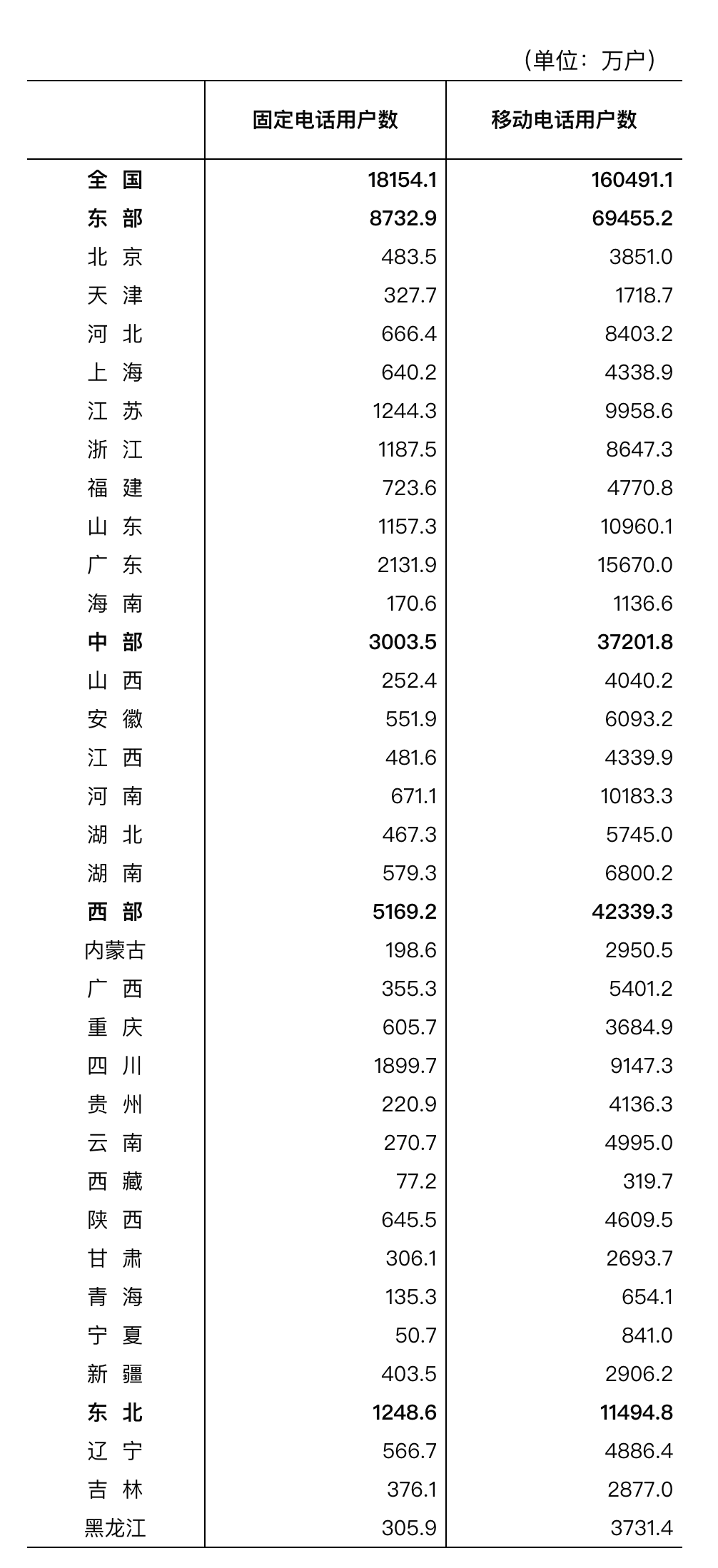 工信部:2021年4月电话用户分省情况 更多阅读:工信部:2018年4月电话用户分省情况工信部:2018年3月电话用户分省情况工信部:2020年12月电话用户分省情况工信部:2019年4月电话用户分省情况工信部:2016年8月电话用户分省情况工信部:2021年9月份电话用户分省情况工信部:2020年1-12月通信业主要指标完成情况工信部:2020年第四季度通信业主要通信能力工信部:2020年前三季度通信业经济运行数据情况工信部:2018年3月通信业主要指标完成情况工信部:2022上半年我国信息消费规模3.24万亿元工信部:2021年1-4月通信业主要指标完成情况工信部:2020年软件和信息技术服务业统计公报主要指标表工信部:2018年8月通信业主要指标完成情况工信部:2018年8月电话及互联网宽带用户分省情况