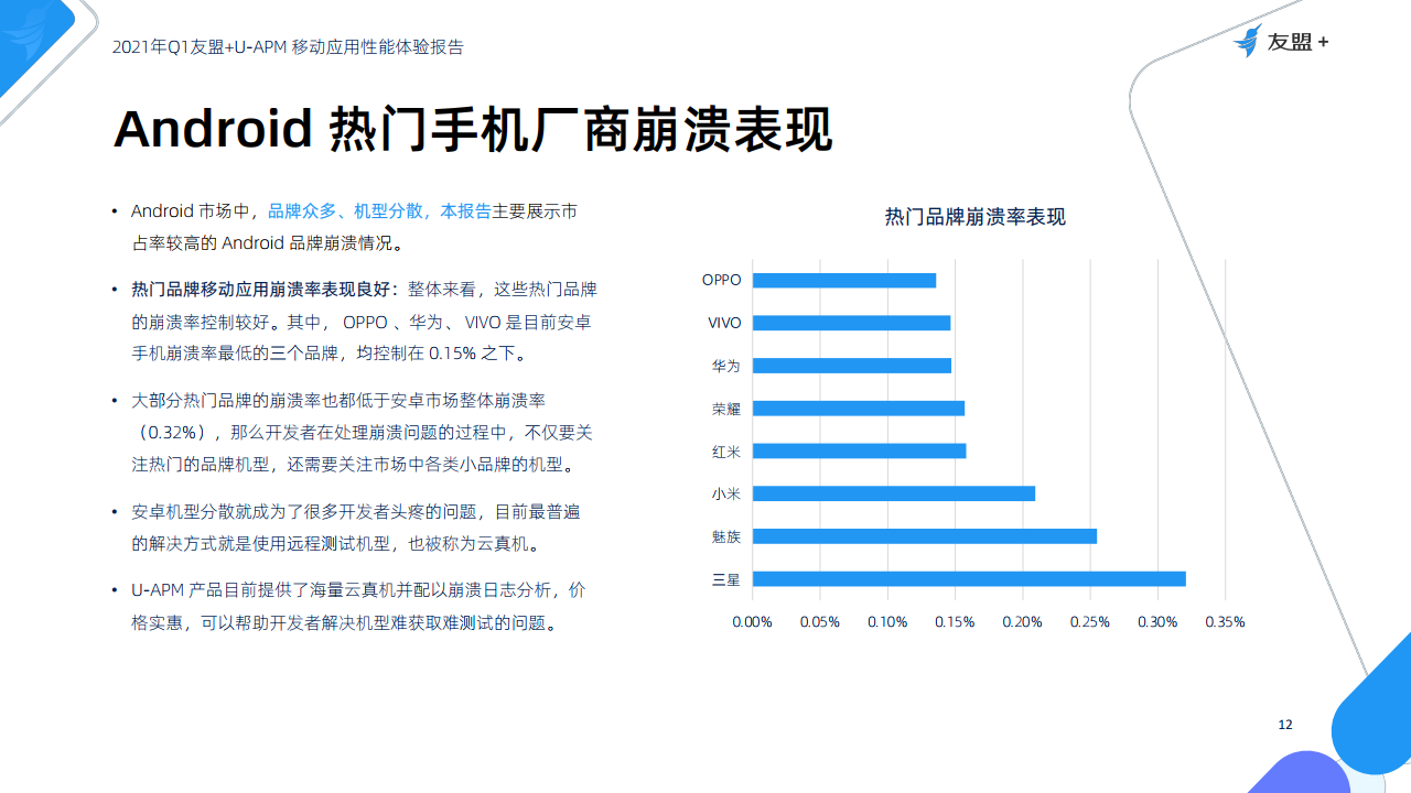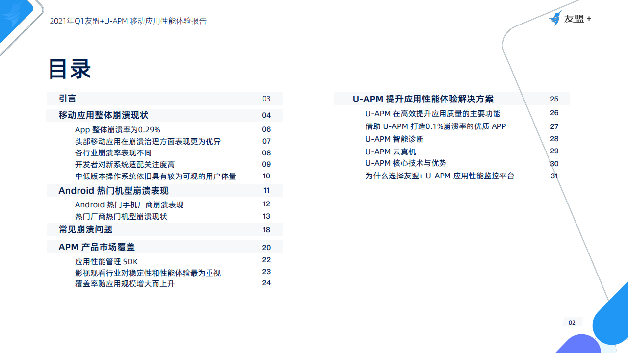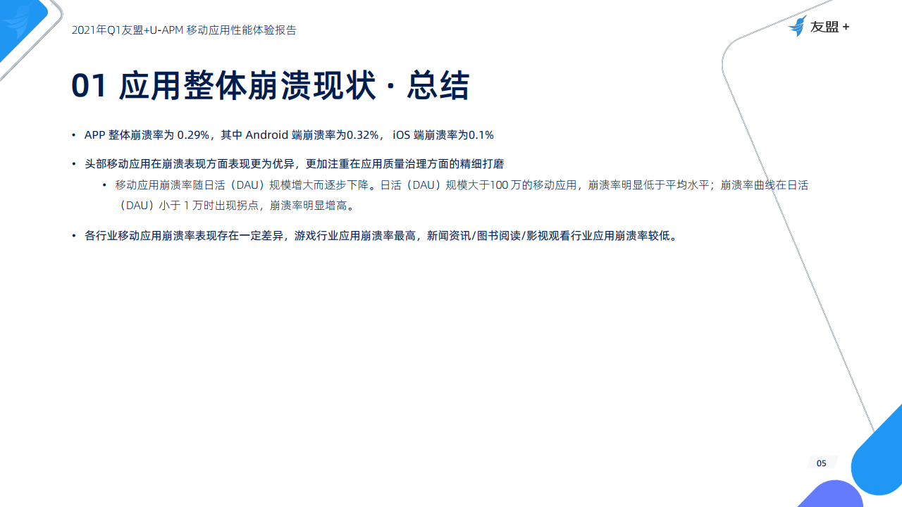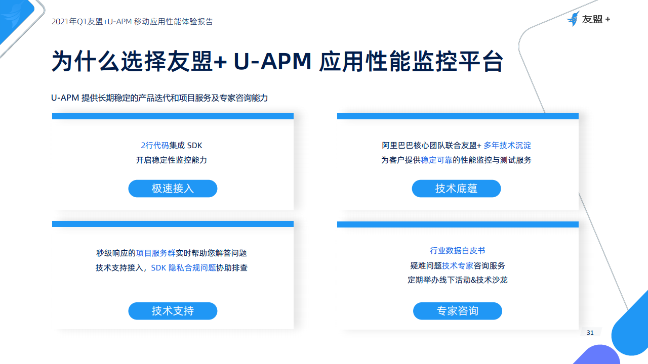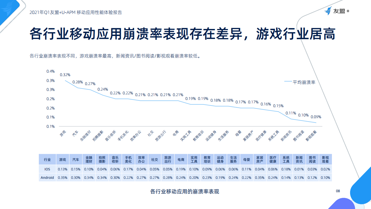 2020年,友盟+原移动分析U-App错误分析模块正式升级为U-APM应用性能监控平台。提供端到端的性能采集、监控和分析能力,帮助互联网企业开发者深入了解应用性能和稳定性,高效定位问题和提升应用体验。经过近一年的观察,带来这份友盟+《2020 年度移动应用性能体验白皮书》,该报告将优先从DEM 视角,并以大家最为关心的移动应用端的性能表现作为切入点,从而让您清晰了解行业动态,精准定位自身产品位置。
