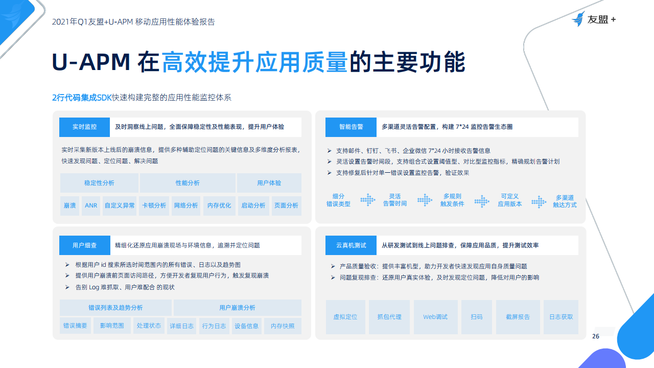 随着信息技术高速发展,移动互联几乎已成为了一种生活方式的代名词,在全民上网的数字热潮中,如何能最大程度保障产品服务的稳定性,提供良好的用户体验,是当前企业都需要思考和亟待解决的问题。App的应用性能稳定是良好用户体验中非常关键的一环,而现实情况却是应用崩溃、卡顿、加载缓慢、页面白屏等问题,频频出现在用户的真实体验之中,成为影响业务表现的直接杀手。为此,应用性能管理(APM)正在国内外蓬勃发展,被越来越多的企业所认可。