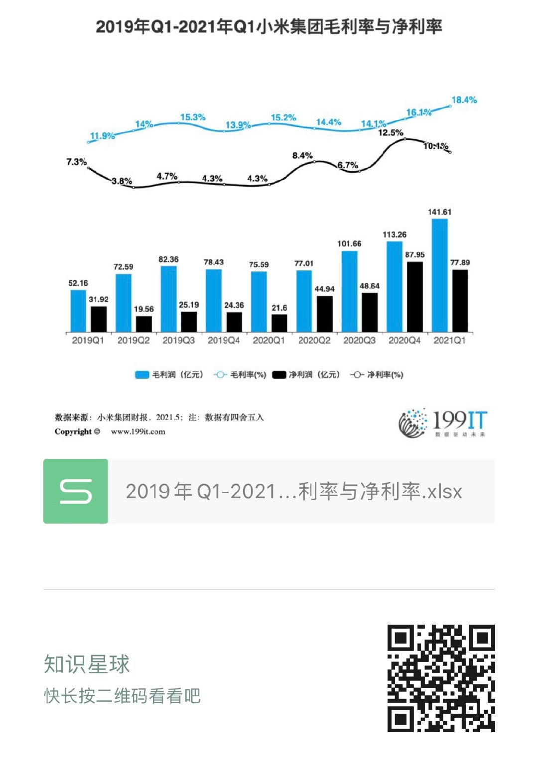 - 2021年Q1-2022年Q1小米集团毛利率与净利率(附原数据表)