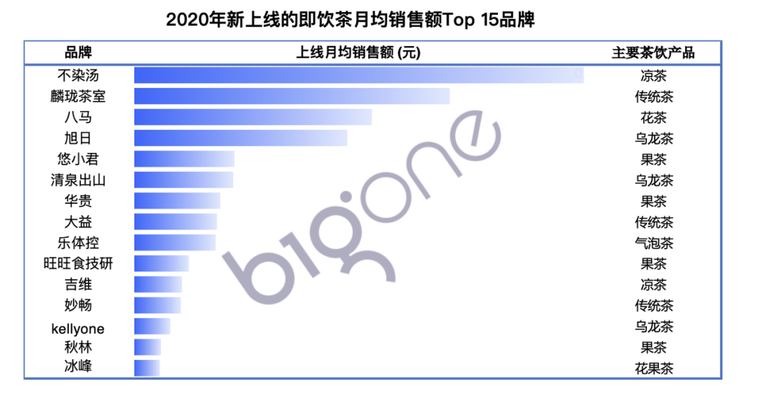 增速较高的主要依然是传统品牌,值得注意的是一些主营其他类型饮料的传统大牌如雀巢(茶萃系列)、可口可乐进军茶饮料后增长明显,新品牌难出圈;新上线品牌主要集中在花果茶,目前月均销售额相对较小。