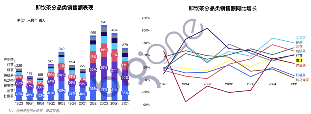 PART I 茶饮赛道线上表现总览:即饮茶高速增长,小包装茶中新消费品牌仍有增长空间