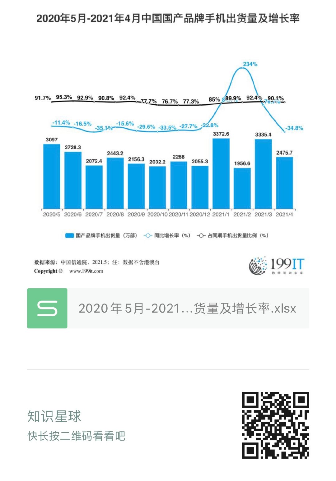 - 2020年7月-2021年5月中国国产品牌手机出货量及增长率(附原数据表)