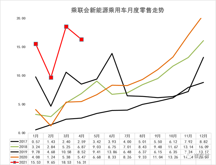 从乘联会的零售数据看,4月新能源乘用车零售销量达到16.3万辆,同比增长3倍,环比3月下降11%,相对于历年4月的环比增长幅度较大。