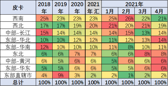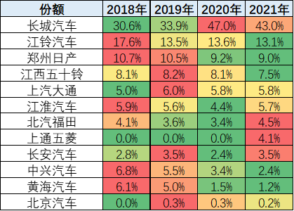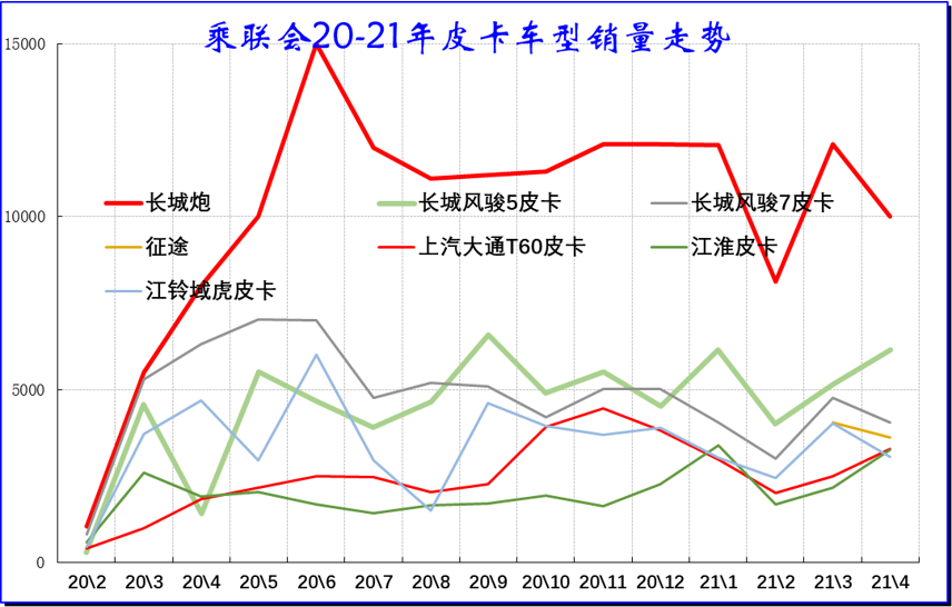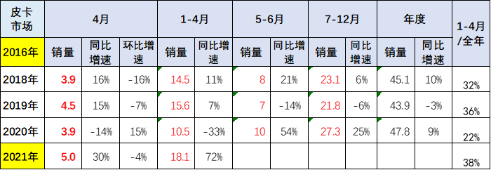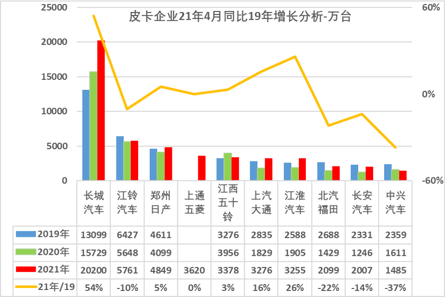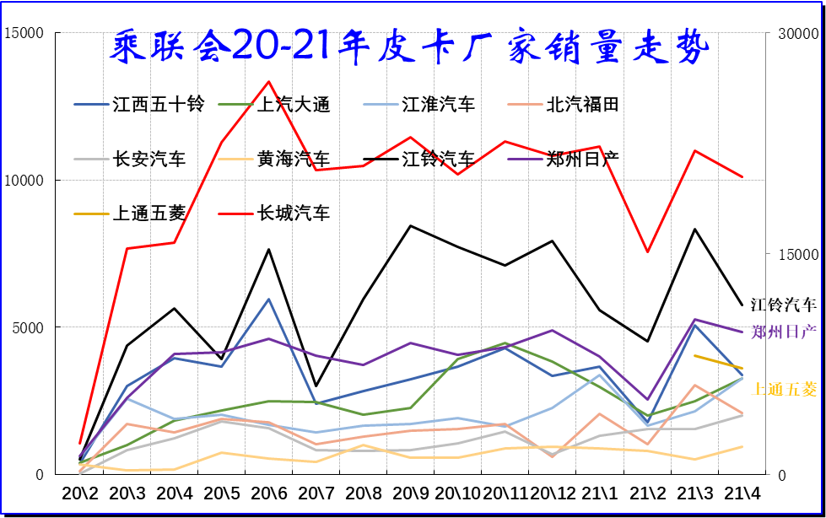 虽然轻卡受到超载治理的刺激增量,但2021年4月的皮卡相对于传统轻卡的表现依旧很强的。