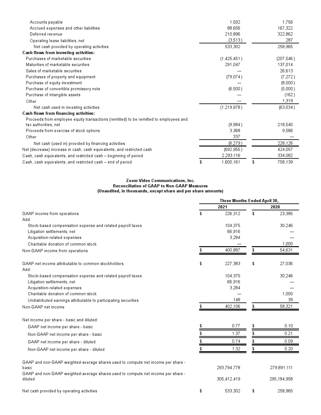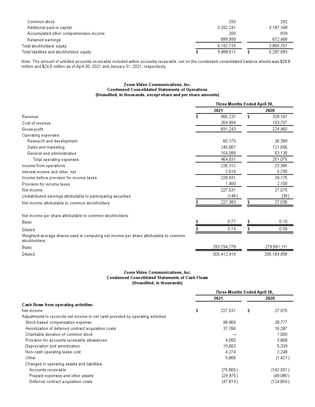 客户指标:总收入的驱动因素包括获得新客户和扩展现有客户。2021年第一季度,员工超过10人的Zoom客户约有49.7万个,同比增长了约87%。