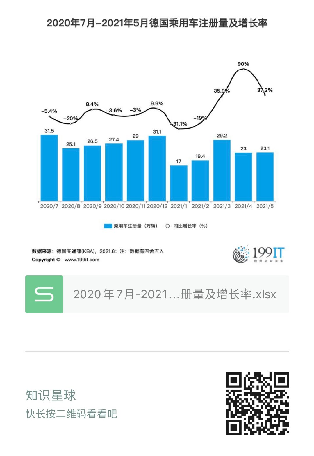 - 2020年5月-2021年4月德国乘用车注册量及增长率(附原数据表)