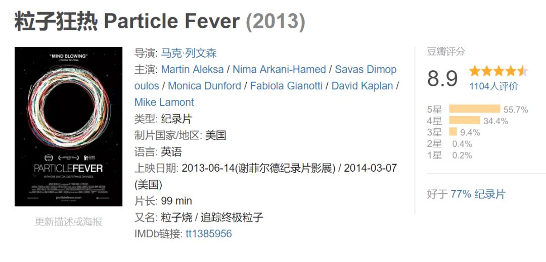 许多底层物理规律的抽象程度可能高达8-10分的程度,可以通过经典的纪录片感受。比如“粒子狂热“,讲述希格斯玻色子是怎么被验证、发现的故事,让人热血沸腾。它的抽象等级非常高,接近探索宇宙基本法则了。
