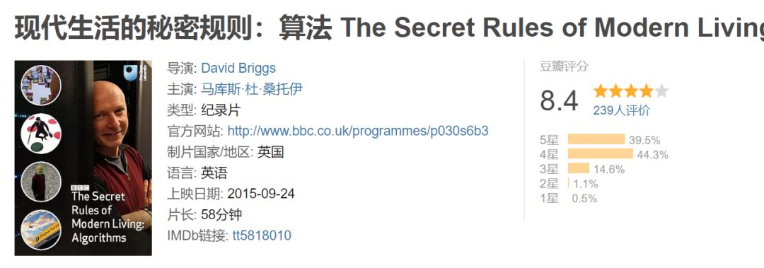 而表达中等抽象级别的客观规律可能只有5-6分的抽象程度。比如“算法-现代生活的秘密规则“的BBC纪录片,讲述的是各种计算机算法,以及对日常生活的影响,更简单易懂。