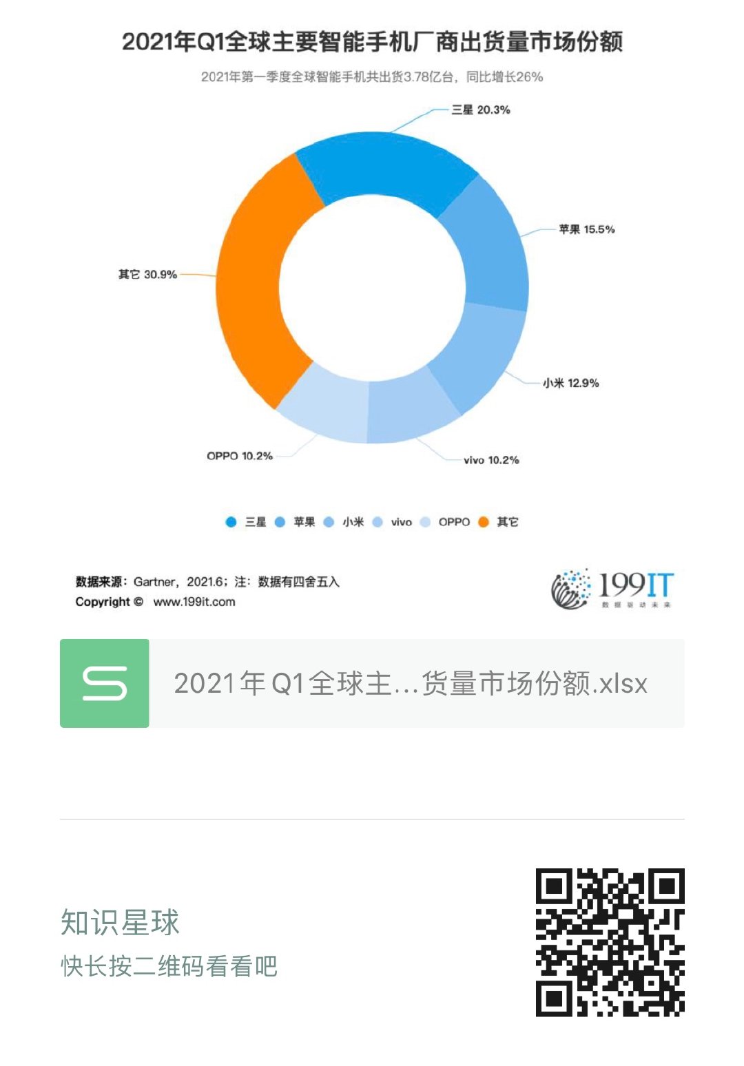 - 2021年Q2全球主要智能手机厂商出货量市场份额(附原数据表)