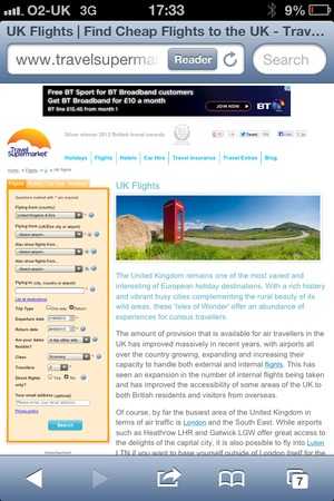 如果你的网站是和航班或旅行相关的,那么提供良好的移动网站访问体验无疑很重要。上个月英国用户在线搜索航班的数量高达320万次,其中超过17%来自手机。