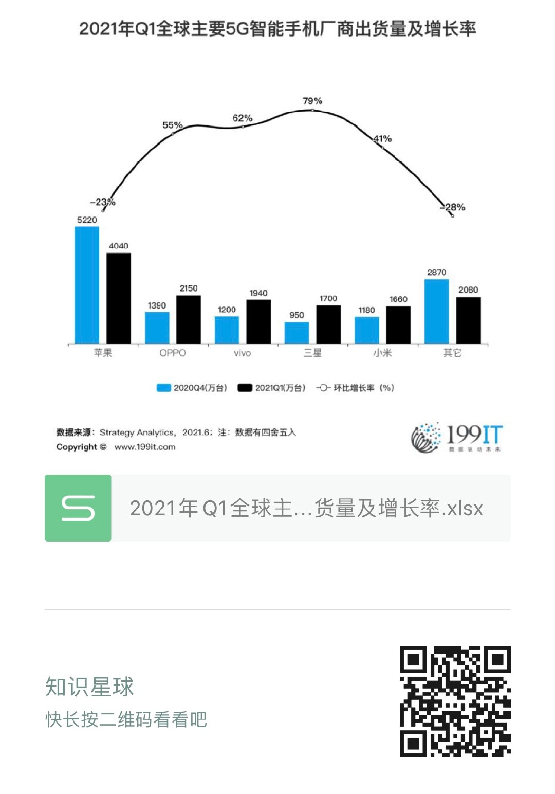 - 2021年Q1全球主要5G智能手机厂商出货量(附原数据表)