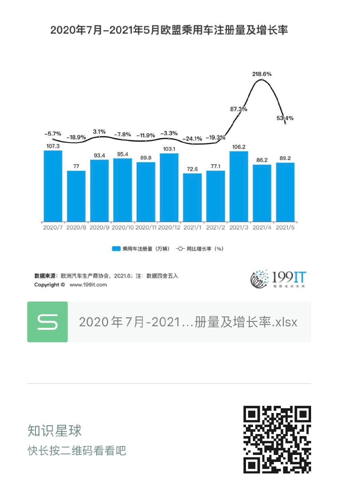 - 2020年3月-2021年2月欧盟乘用车注册量及增长率(附原数据表)