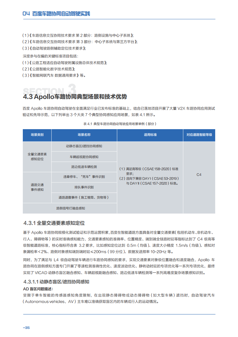 其中,C4级别道路值得我们一起特别关注。与更高级智能道路相比,C4级智能道路投入产出比更高,其覆盖的智能汽车等级范围从 L2+到 L5。也就是说,C4级智能道路不仅能为高级自动驾驶车辆提供协同服务,还能让 L2+、L3级辅助驾驶车辆具备高级自动驾驶能力,促进自动驾驶规模商业化落地。