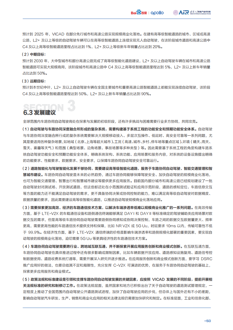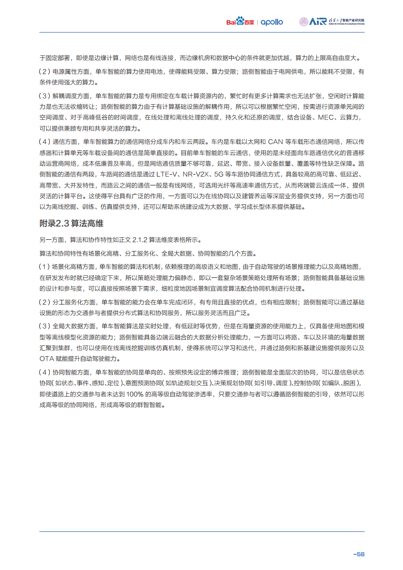 清华大学智能产业研究院与百度 Apollo 在白皮书中对国内道路现状进行了智能化分级,将道路智能化水平分为 C0-C5级6个等级。道路智能化等级越高,对车辆智能化要求也越低,覆盖的智能汽车等级范围也越广。