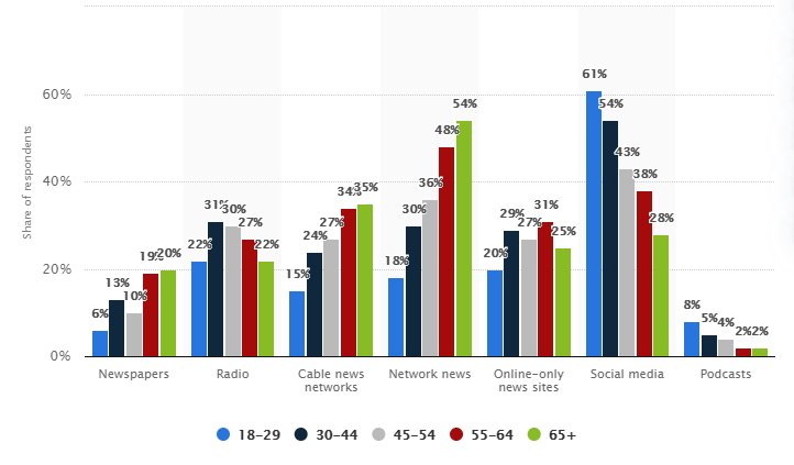 Facebook最大的用户群体,其年龄介于25-34岁之间。图片来源:Statista