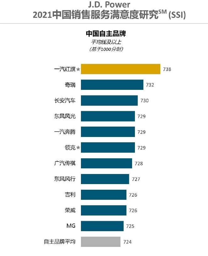 此外,为推动中国自主品牌发展和进步,2021年,J.D. Power首次从主流车销售服务满意度排名中细分出中国自主品牌排名单独呈现。